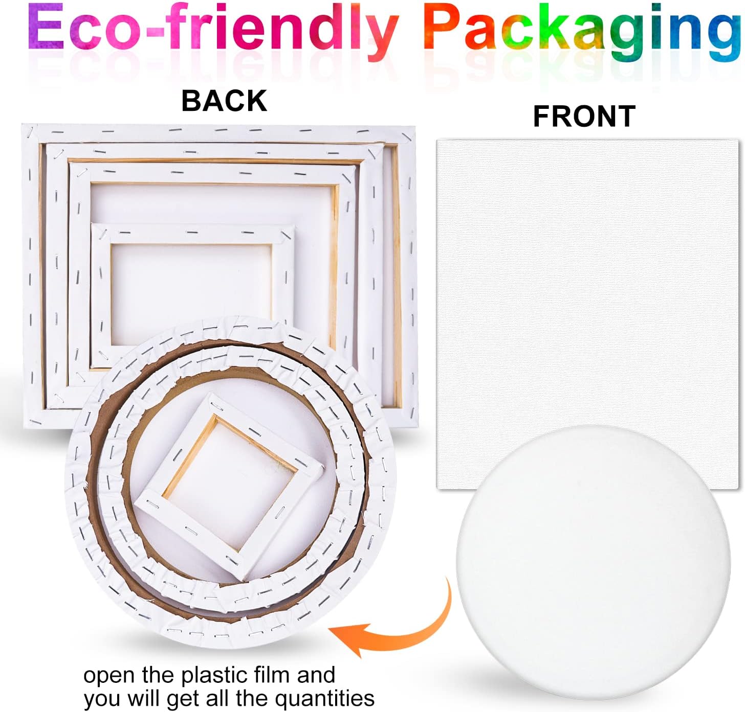 14 Packs Stretched Canvases for Painting, Multi Pack 11x14, 9.44x12, 8x10, 5x7, 4x4, Round Canvas with 8x8,10x10(2 of Each), Blank Primed Canvas, for Oil Paint, Acrylic Paint, for Beginners, Artists.