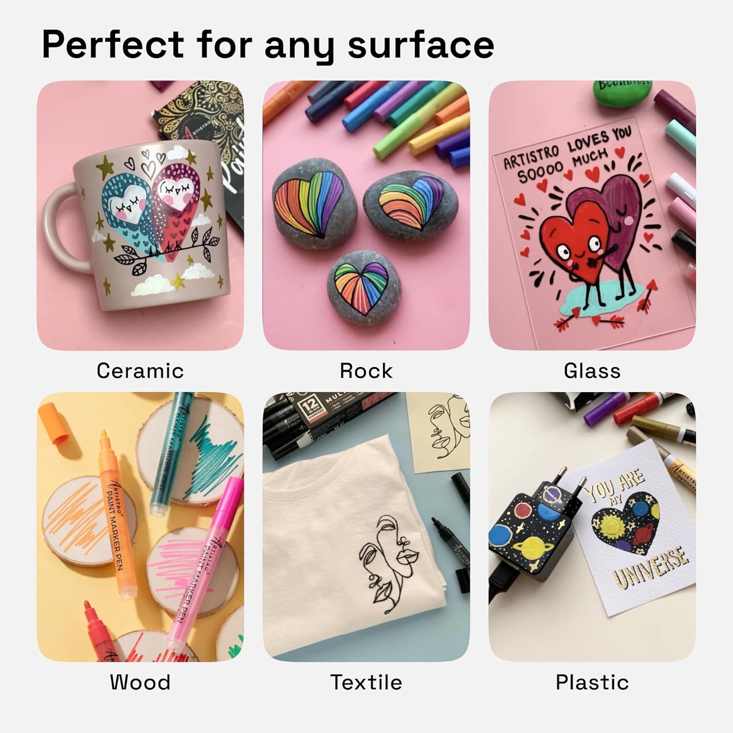 ARTISTRO Metallic Paint Pens for Rock Painting, Stone, Ceramic, Glass, Wood, Fabric, Pebbles, Scrapbook Journals, Photo Albums, Card Stocks. Set of 12 Acrylic Paint Markers Extra-Fine Tip 0.7mm