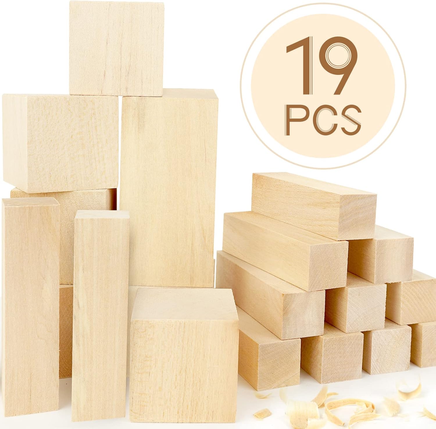 - [Basswood Carving Blocks]-Get creative with this 19-piece carving wood set, featuring 3 different sizes for versatility. Enjoy 12 rectangle blocks (1''x1''x4''), 6 cube blocks (2''x2''x4''), and 1 rectangle block (2''x2''x4'').