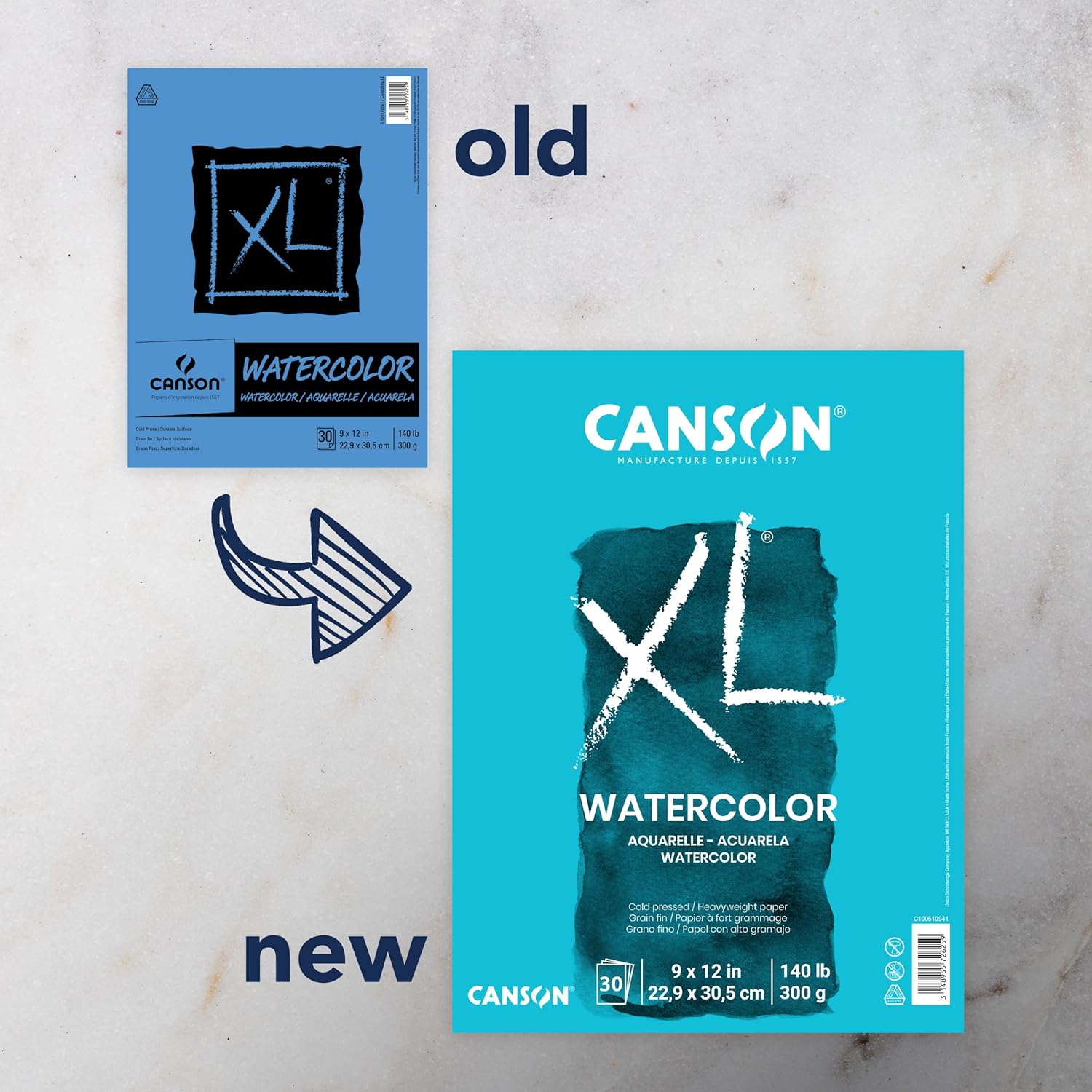 Canson XL Series Watercolor Pad, Heavyweight White Paper, Foldover Binding, 30 Sheets, 9x12 inch