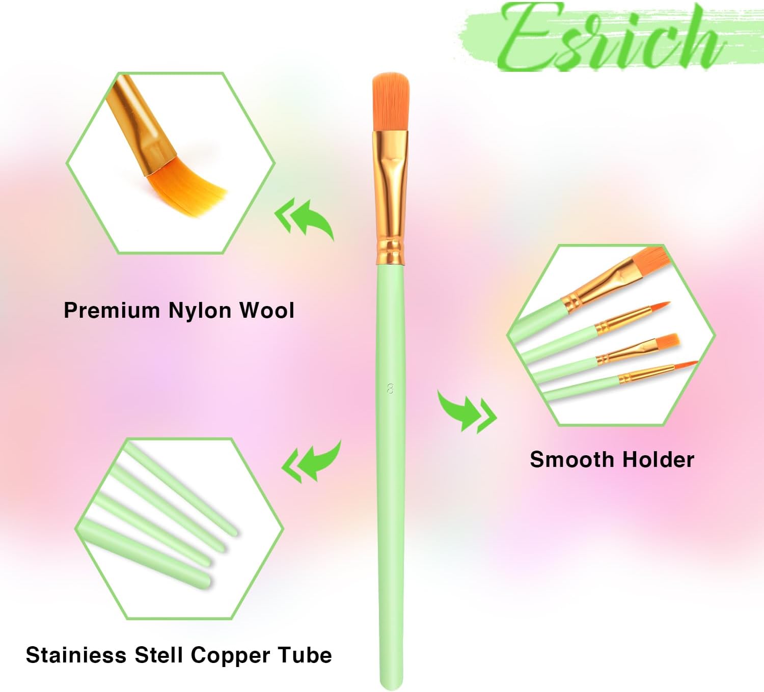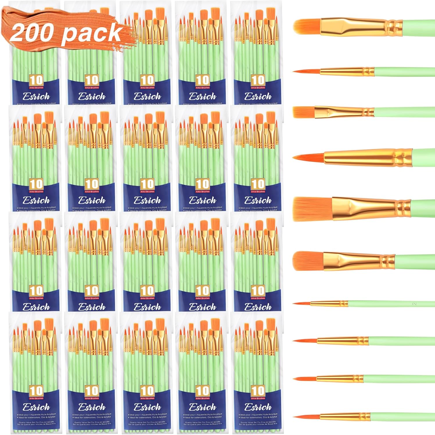 ESRICH Paint Brushes Set,20 Packs 200 Pcs Acrylic Paint Brush Set,Acrylic Oil Watercolor, Face Nail Art, Miniature Detailing,Rock Painting,Painting Artist Professional Kits(Green)