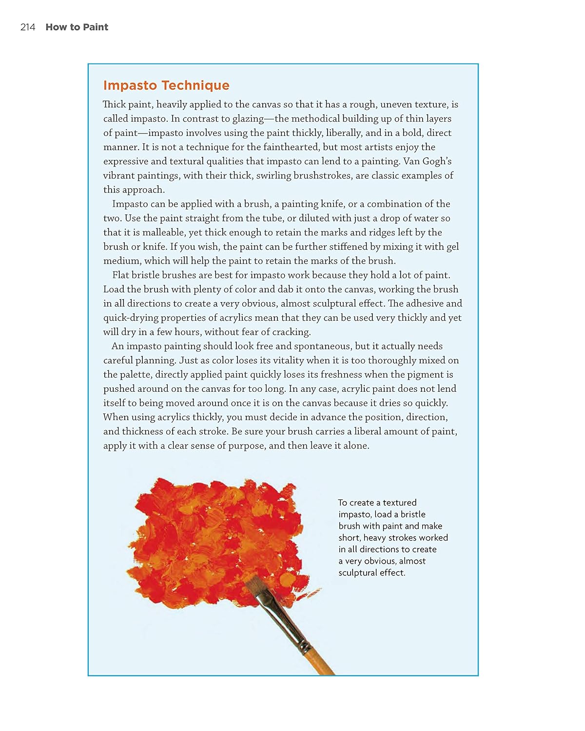 Each section has practical information on materials and equipment and includes a gallery of professional work by various artists to inspire your own creativity. The thirty-eight included projects cover all types of subjects, including landscapes, still life, people, flowers, animals, weathered rocks, rough tree bark, foliage, ocean waves, buildings, and more, so there is something for everyone!