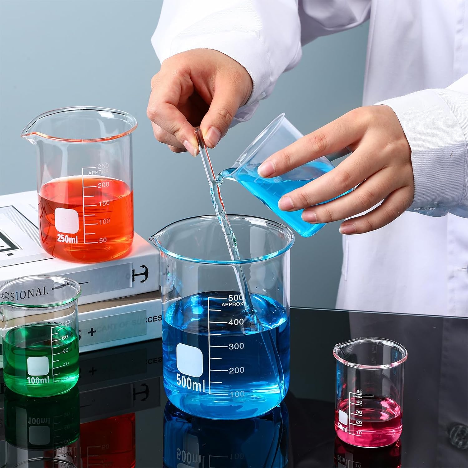 - Multiple Sizes: glass stirring rod: 5.91 inches/15 cm, lab beakers: 50ml, 100ml, 250ml, 250ml; Different sizes are suitable for various experiments