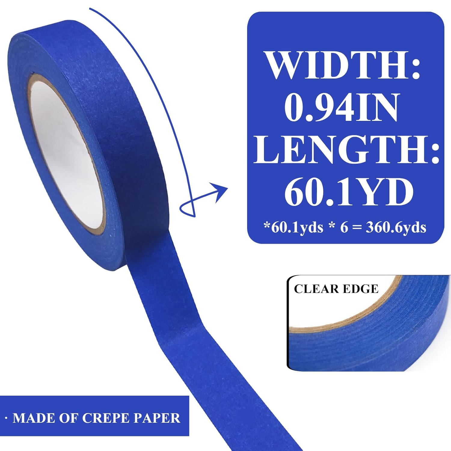 Masking Tape, Blue Tapes, Painters Tape, Artist Painter's Painting Paper Tape for Multi-Purpose Wall Paint, DIY Crafts, Scrapbook, Decoration, Labeling, Edge Finishing, 0.94IN x 60.1YD, 6 Rolls