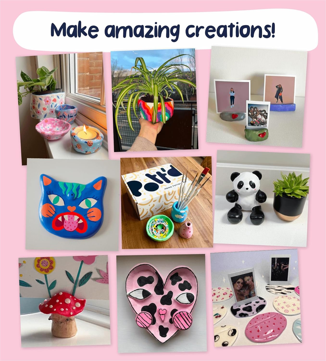 Pott'd Air Dry Clay for Adults. Beginners Home Pottery Kit for Adults. DIY Craft Kit for Adults. Kit Includes: Air-Dry Clay for Adults, Tools, Paints, Brushes, Sealant, How-to-Guides