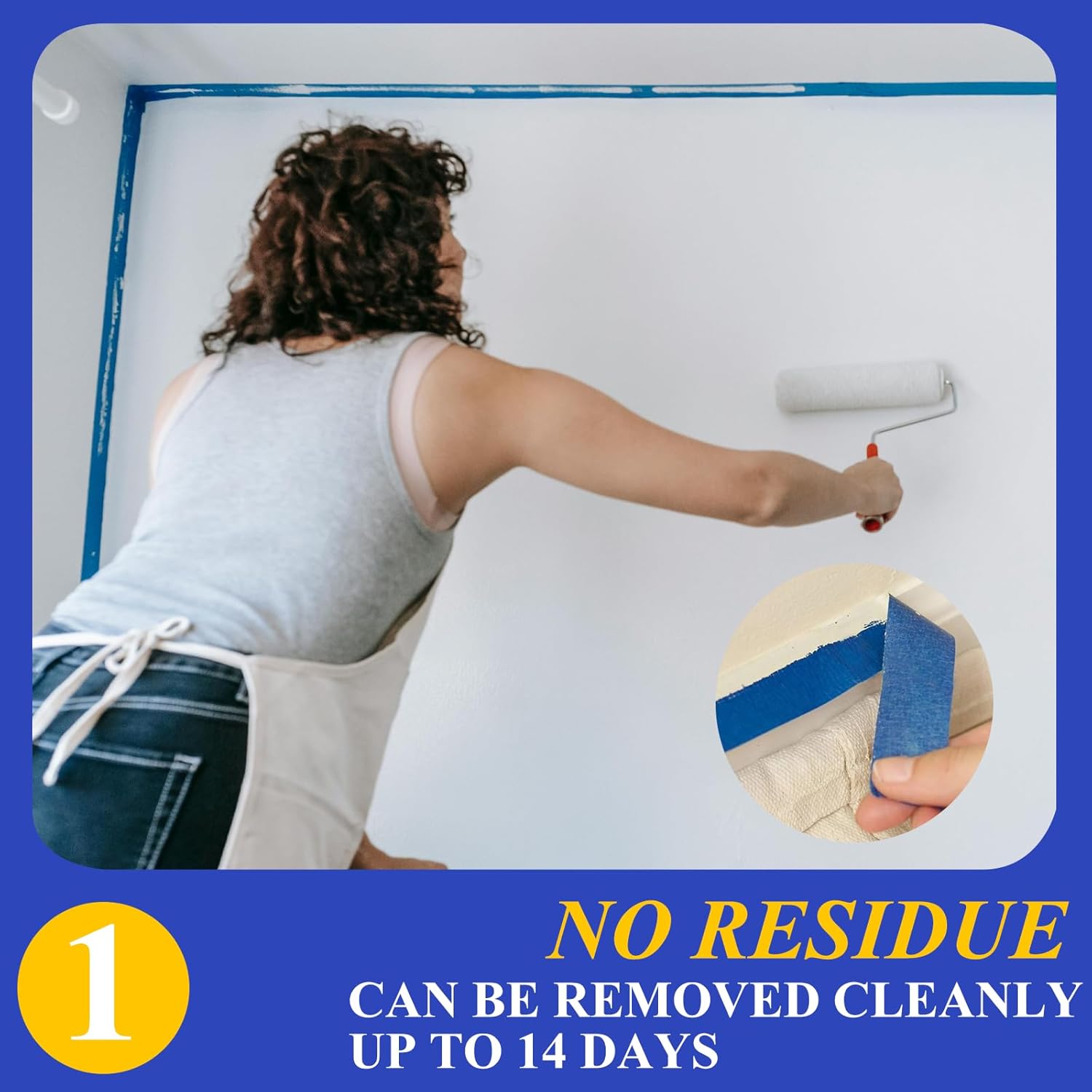 Professional Painters Tapes 2 Inch Wide (1.88 In. x 60 Yds), Blue Masking Tape, Paint Paper Tape, Protects Surfaces, No Residue, Painter's Tape for Wall Painting, Artist Paint, Canvas Edging, 6 Rolls