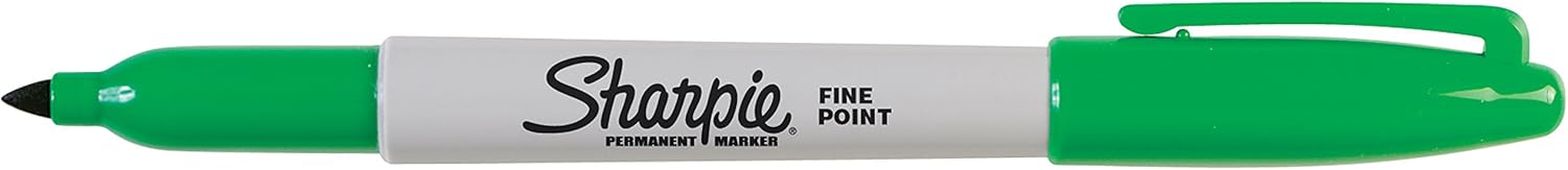 Sharpie Permanent Markers, Fine Point, Green, 12 Count