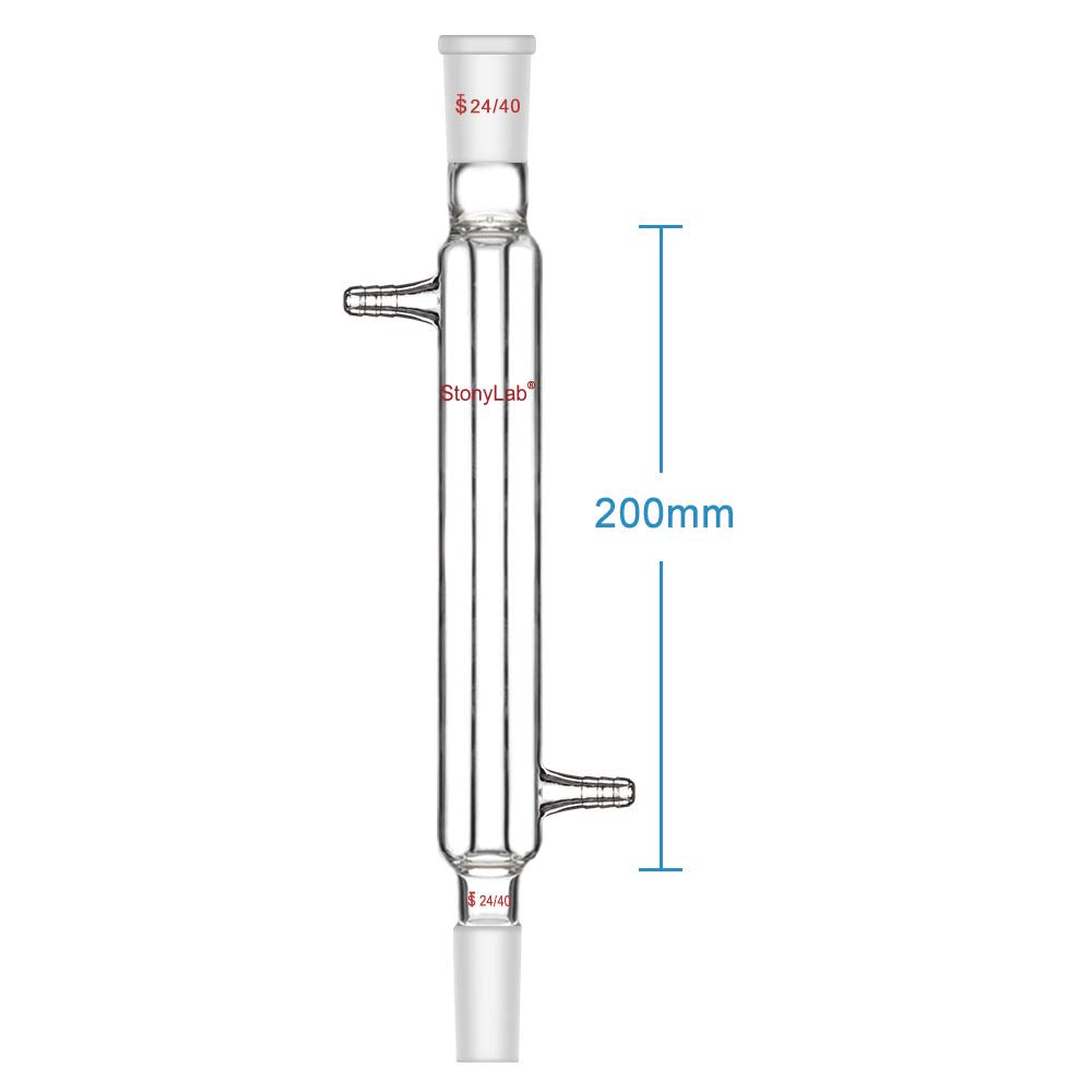 StonyLab Borosilicate Glass Liebig Condenser with 24/40 Joint 200 mm Jacket Length Lab Glass Condenser