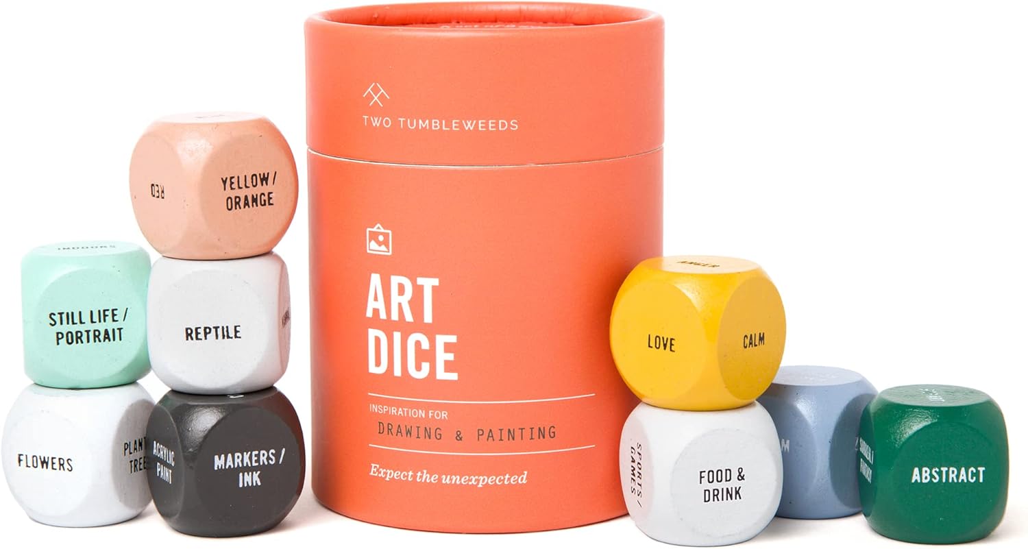 Two Tumbleweeds Art Dice - Drawing & Painting Game for Adults, Artists & Teachers - Set of 9 Dice for Creative Inspiration - Drawing Prompts for Studio and Classroom - Gift for Artist - 1+ Players